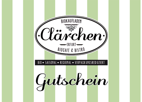 Wir bieten für das Clärchen natürlich auch Gutscheine - für unseren Bioladen und unser Biocafé und Bistro - zum verschenken oder selber nutzen an.